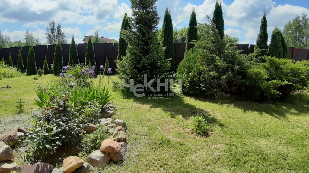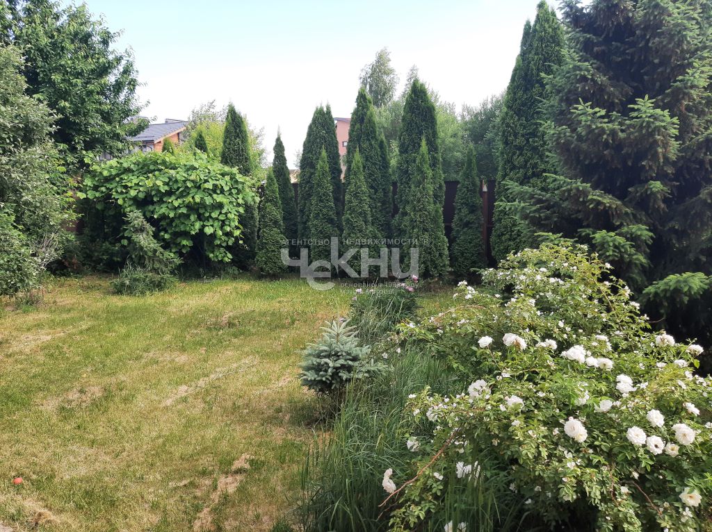 • На участке уже есть хвойные и плодовые деревья, декоративные посадки, ухоженный газон — территория выглядит «живой» и обжитой.